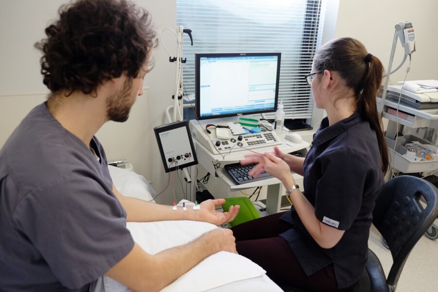 C’est la première fois que les diplômés du programme Électrophysiologie médicale doivent se soumettre à un tel exercice pour être en mesure de travailler dans leur domaine. Les questions d’examen étaient préparées par un comité composé de membres du réseau et de professeurs qui donnent les cours de la formation spécifique au programme. Rappelons que dans toute la province, seulement trois établissements collégiaux offrent la formation en électrophysiologie médicale : le Collège Ahuntsic (Montréal), le Collège Ellis (Trois-Rivières) et le Cégep de Lévis.