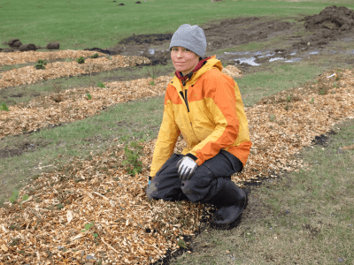 Les 2, 3, 4 et 5 mai derniers, plusieurs membres de notre communauté ont enfilé une paire de gants pour mettre en terre 800 arbres et végétaux sur le terrain du cégep. Cet automne, encore 1000 arbres et arbustes seront plantés à la ferme-école, sur les terres agricoles, le long des bandes riveraines. Les opérations de mise en terre sont prises en charge par Arbre-Évolution, une coopérative de la région spécialisée en reboisement social.