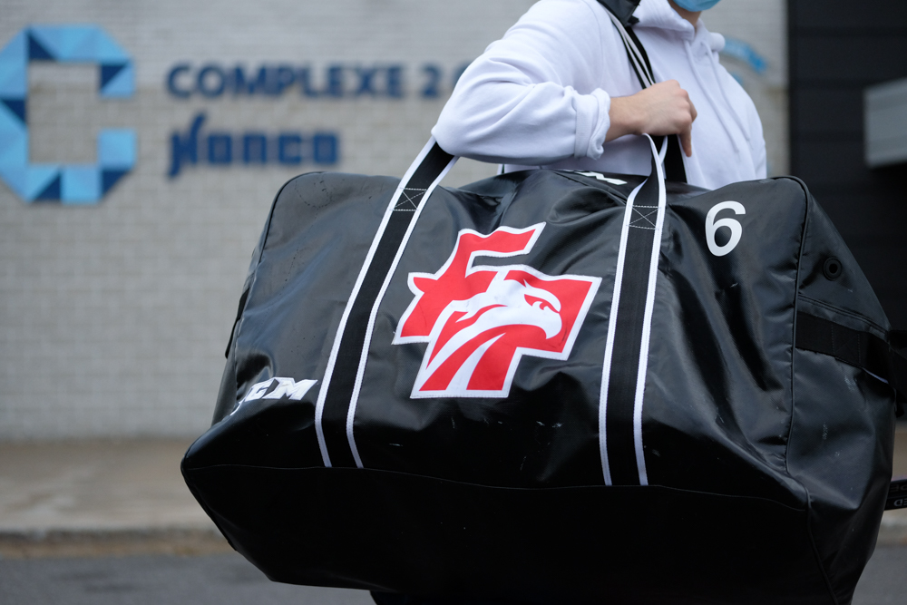 Alors qu’elle devait entamer sa première saison en 2020-2021, l’équipe de hockey masculin division 2 des Faucons du cégep a disputé sa première partie à domicile au Complexe 2 Glaces Honco samedi.