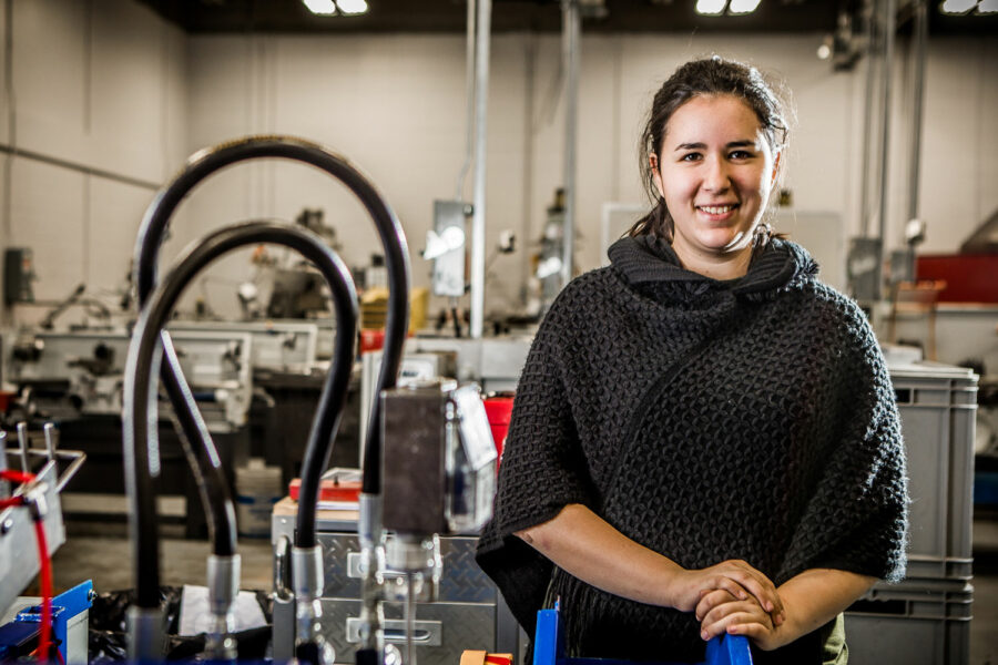 Noémie Blanchette, étudiante en Techniques de génie mécanique au Cégep de Lévis, n’a pas peur de foncer. Bien que peu de filles s’intéressent à la mécanique et à la robotique, Noémie est la preuve qu’elles ont leur place dans ces métiers traditionnellement masculins. Elle continue de foncer, trouvant sa force dans son désir de créer, de développer et d’innover.