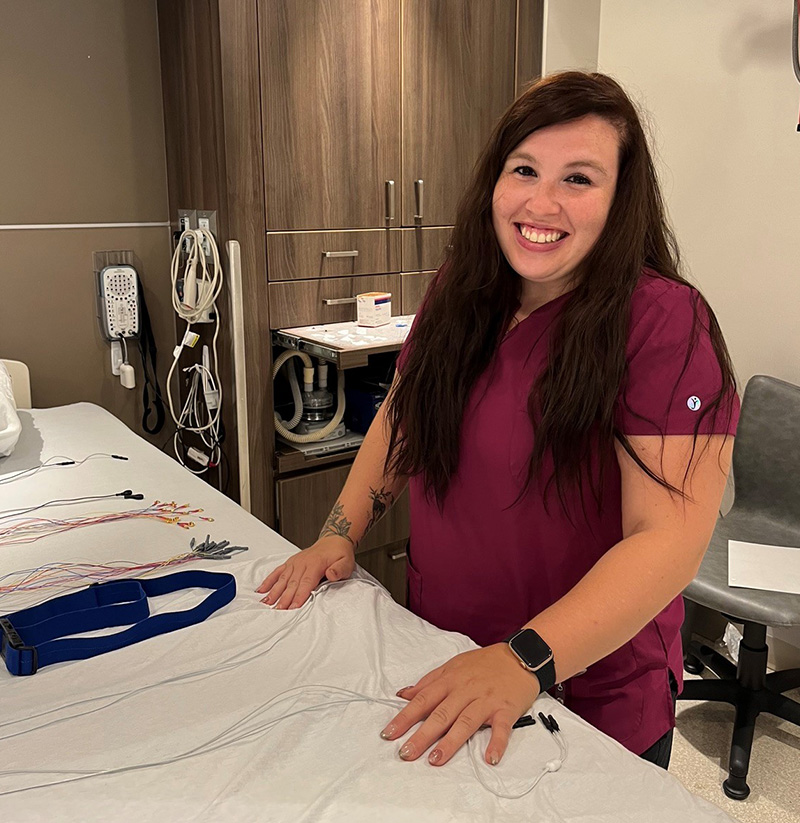 Alexandra a choisi de se spécialiser en polysomnographie, c’est-à-dire les troubles du sommeil. Elle travaille à l’Institut universitaire de cardiologie et de pneumologie de Québec (IUCPQ) au sein d’une équipe qu’elle qualifie de fantastique. Étant donné la nature des troubles dont souffrent ses patients, elle travaille de nuit, ce qui lui convient parfaitement.